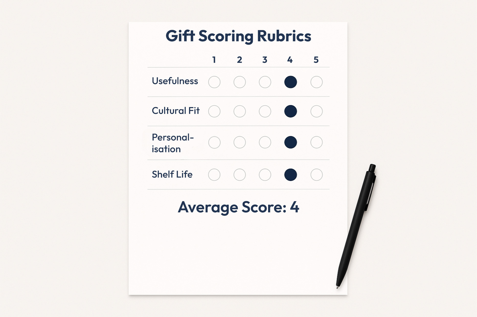 “Memorable” is not a synonym for expensive. For a Singapore D&D, it blends four things: usefulness, cultural fit, tasteful personalisation, and shelf life. Keep it simple with a one-page scoring rubric. Rate each item from 1 to 5 on the four factors, then average the scores. You can do this in five minutes with two colleagues and a short list of options.